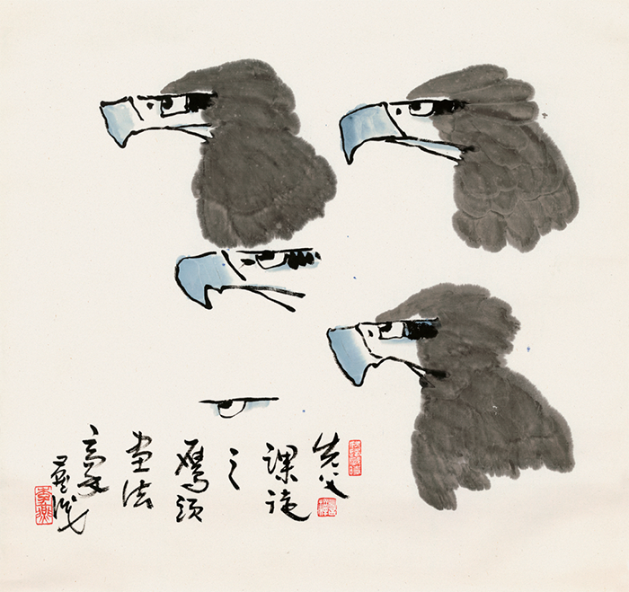 李苦禅 鹰头画法 纸本设色 60.5cm×64cm 1980年