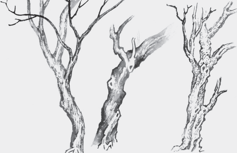 学习画树,要先了解树的基本形态和穿插关系。因此,没有叶子但形态清晰的枯树是最好的入手对象。树干的勾皴法,树枝的勾写法,以及前后枝用墨的干湿深浅变化等,都能在画枯树时接触到。 本期课堂,我们先来了解枯树的画法吧! |
