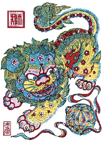 武强年画《狮子滚绣球》 |