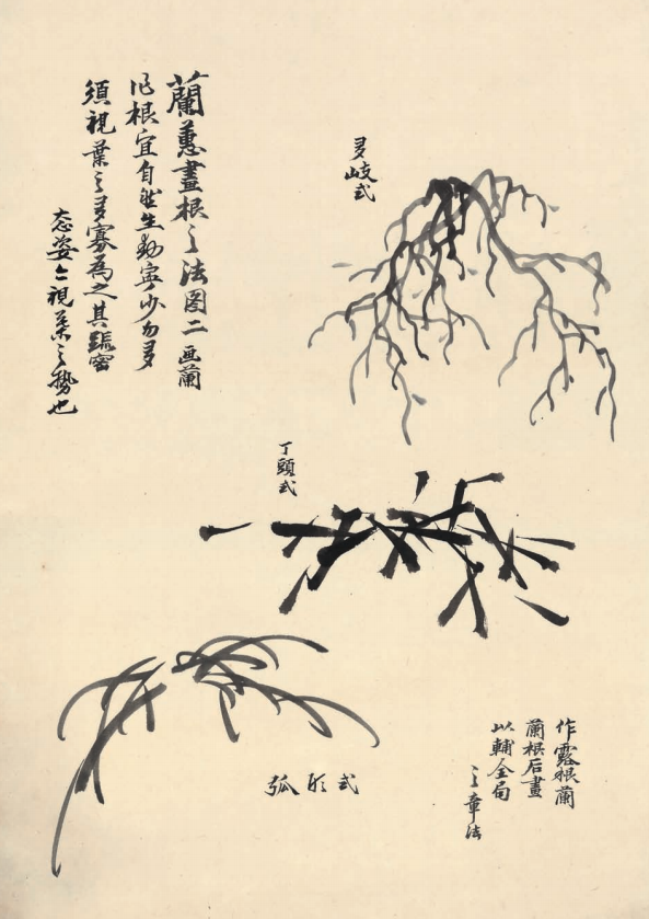 兰蕙画根之法(多岐式 丁头式 弧形式)